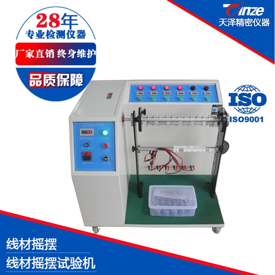 試驗(yàn)方法:試法是將試料固定在夾具上,并加上一定荷重,夾具左右搖擺,經(jīng)一定次數(shù)后,檢查其斷線率,或至無法通電時,查看其總計數(shù)次數(shù),能自己動停止工作;